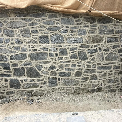 Laying of natural stone slabs.